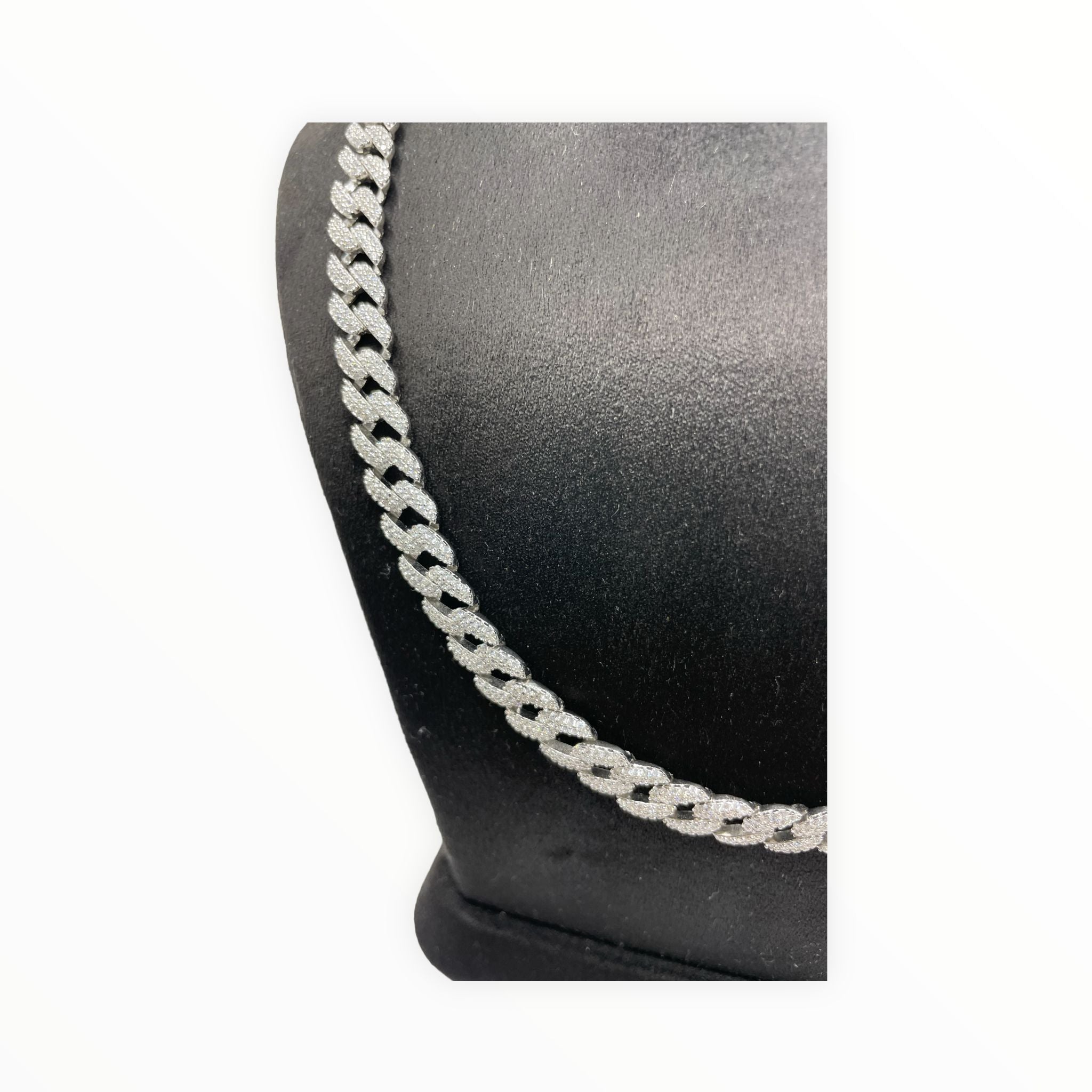 Das 925er Silber Iced Out Cuban Link kette aus Italien mit Zirkonia Steinbesatz ist ein herausragendes Schmuckstück, das exklusiv aus echtem 925 Sterling Silber gefertigt wurde. Jedes Detail wurde sorgfältig handgearbeitet und authentifiziert durch den Stempel '925', was für höchste Qualität steht. Die makellos hochglanzpolierte Oberfläche ist kunstvoll mit funkelnden Zirkonia Steinen veredelt, was jedem Kette seine Einzigartigkeit verleiht.