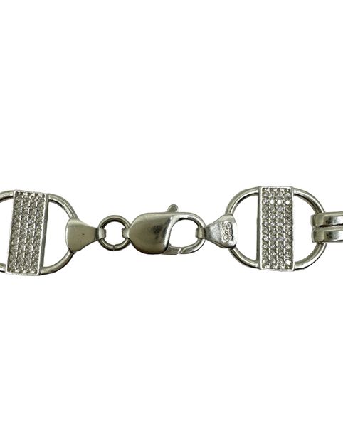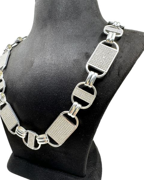 ICED OUT PLATTENKETTE (Steigbügelkette) - 16MM BREIT 65CM - SILBER 925