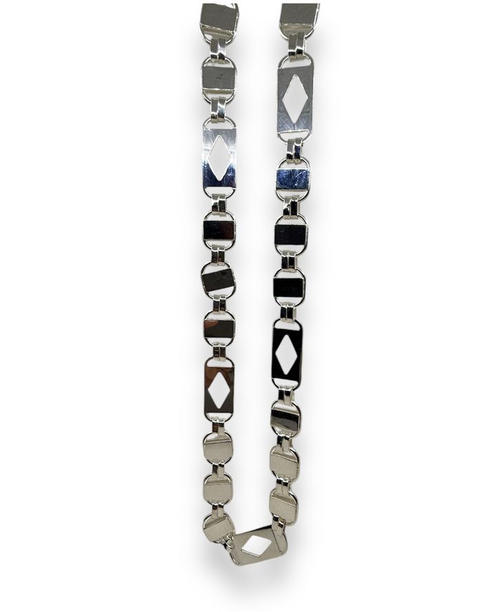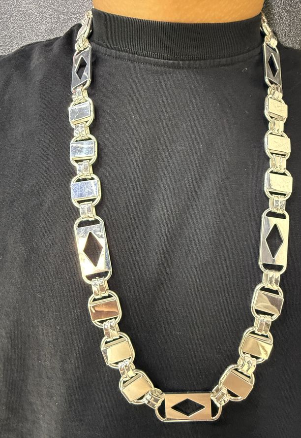 Tauchen Sie ein in die urbane Praxis und den markanten Charme unserer atemberaubenden Plattenkette , gefertigt aus hochwertigem 925er Sterlingsilber.