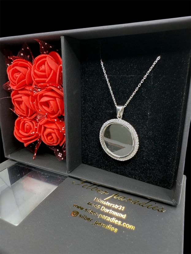 Runde Platte Halskette – Limitierte Edition – 925 Silber – Inklusive Rosenbox & Wunschgravur Halskette mit runder Gravurplatte – 925 Sterling Silber