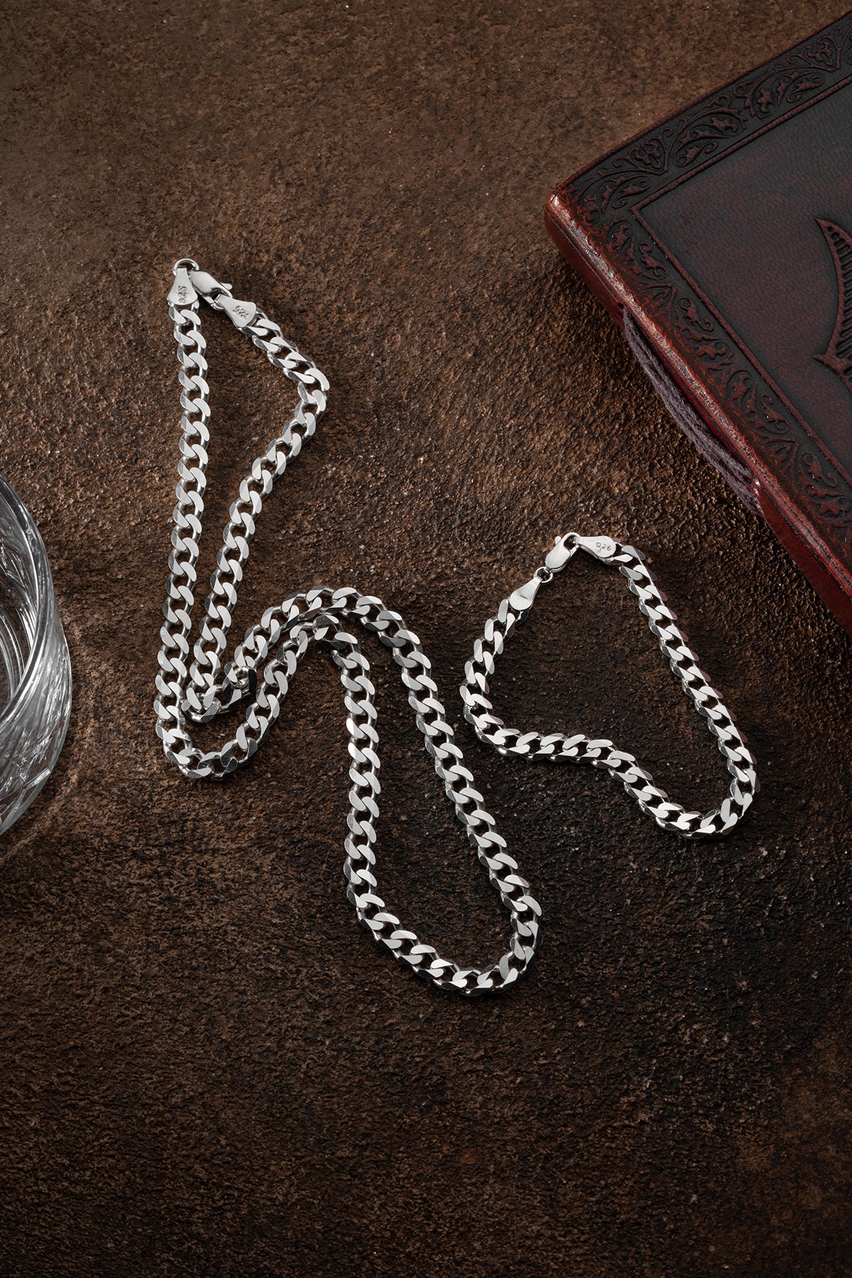Das Set beinhaltet eine silberne Panzerkette mit einer Breite von 4,5 mm, die sowohl eine Halskette als auch ein Armband umfasst. Sowohl das eine als auch das andere Teil des Sets bestehen aus feinstem 925er Silber. Dies sorgt für eine attraktive Erscheinung und gewährleistet eine lange Lebensdauer. Das 925er Silber, auch Sterlingsilber genannt, setzt sich zu 92,5% aus reinem Silber und zu 7,5% aus anderen Metallen zusammen, meist Kupfer. Dies erhöht die Festigkeit und verringert das Risiko des Anlaufens. Das klassische Panzerketten-Design, das für seine Robustheit und seinen komfortablen Sitz bekannt ist, wird von der Halskette und dem Armband aufgegriffen. Die Glieder sind genau bearbeitet, was eine glatte und angenehme Tragefläche schafft – perfekt für den täglichen Gebrauch. Die Verschlüsse der beiden Schmuckstücke sind robust hergestellt und garantieren eine sichere